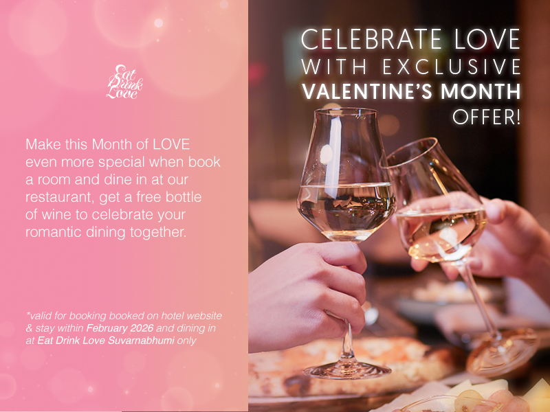 Eat, Drink Love Suvarnabhumi is our all-day restaurant that offers a 'global sensation' of flavors. The chefs of EDL have created a signature menu of a hybrid culture where the tastes of Thailand are combined with modern preparation methods to offer our guests a delicious introduction to Thai cuisine in a relaxed and casual atmosphere.